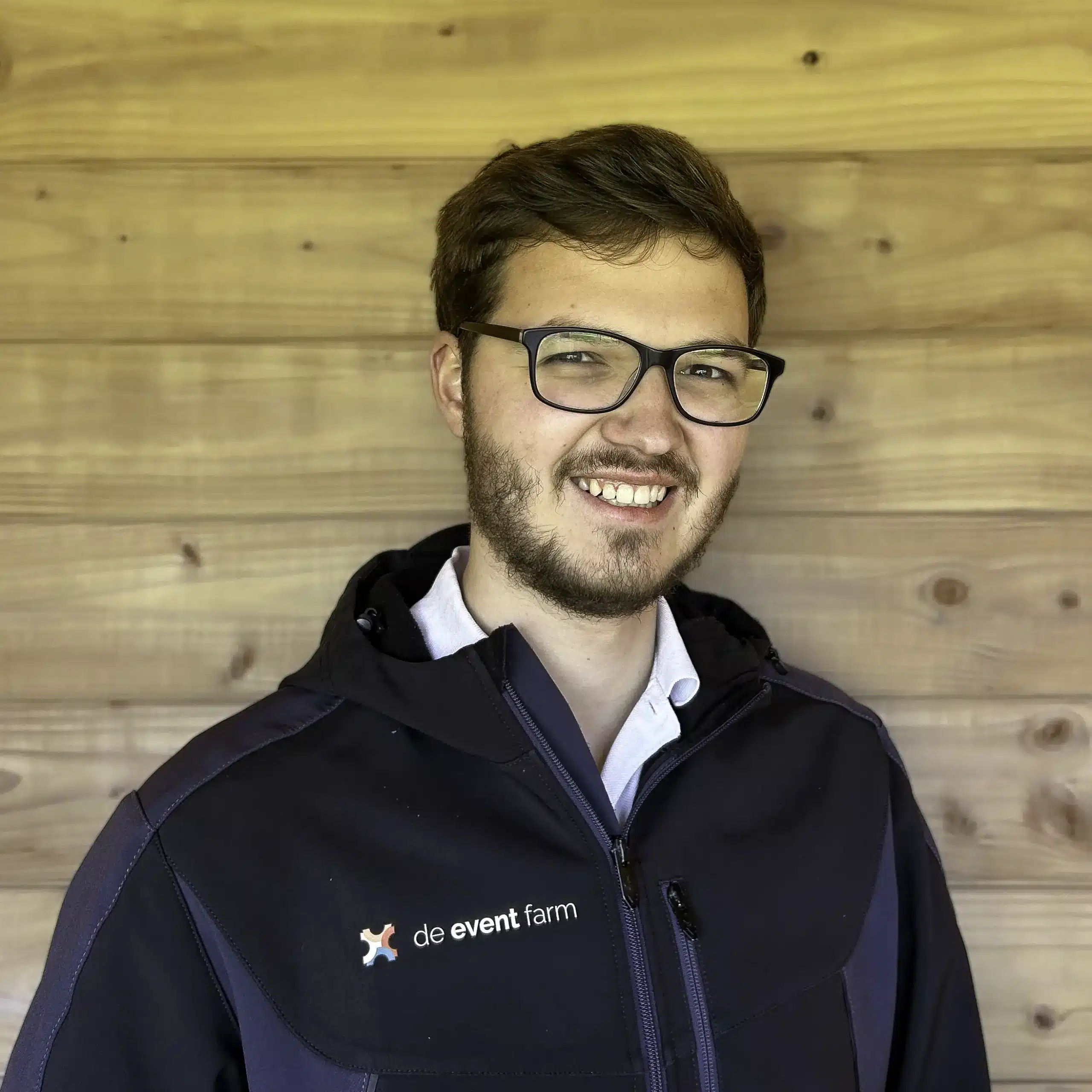 Jesse zijn passie voor de evenementenbranche is er met de paplepel ingegoten. Hij is flexibel, een echte doener en draait zijn hand niet om voor lange dagen. Buiten werken geeft hem energie en hij zet zich altijd vol enthousiasme in.